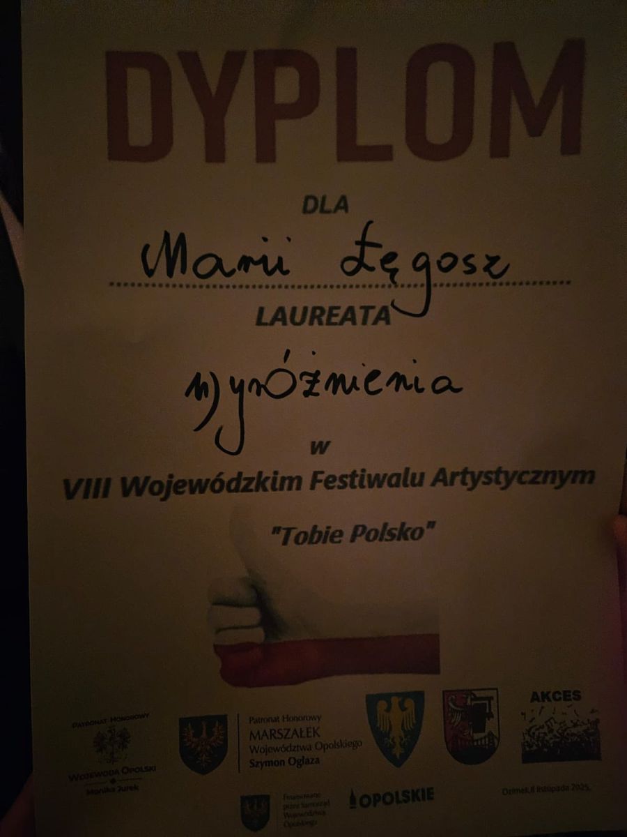 Z ogromną radością informujemy, że Maria Łęgosz, uczennica naszej szkoły, otrzymała wyróżnienie za swoją pracę. Gratulujemy serdecznie i życzymy dalszych sukcesów!